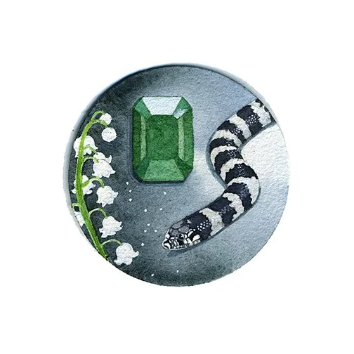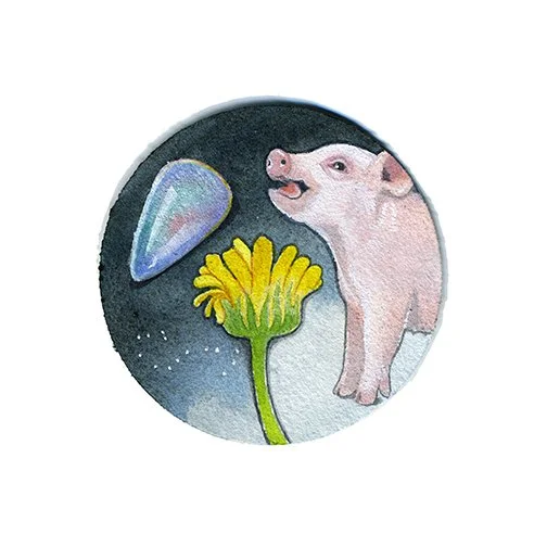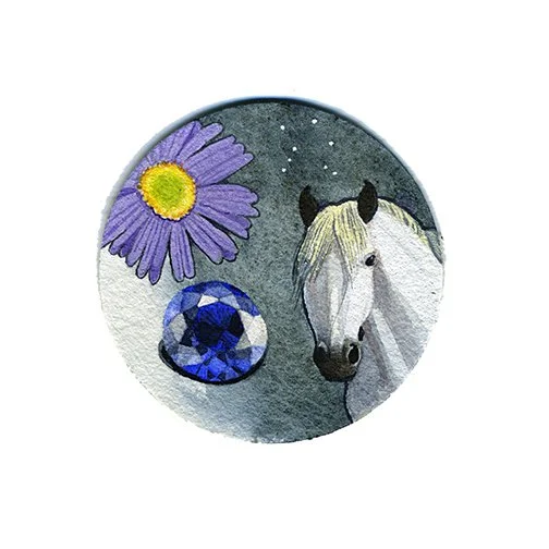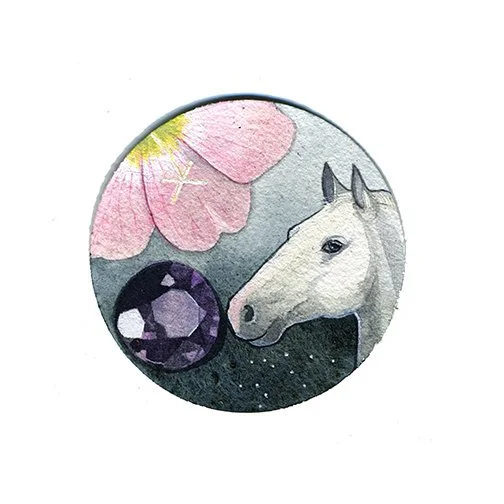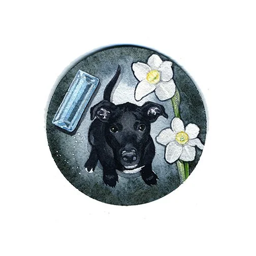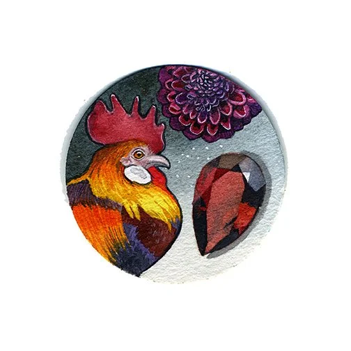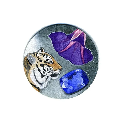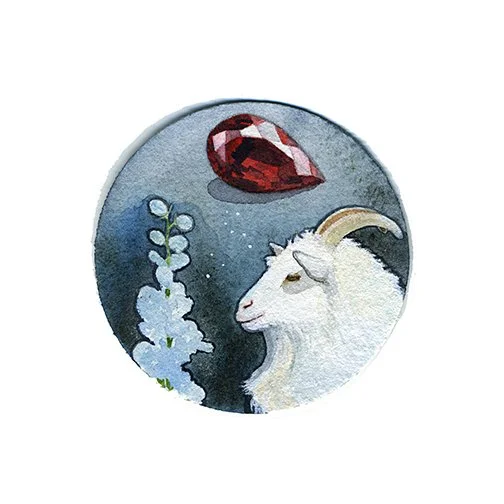 Each painting depicts the recipient’s zodiac sign, birthstone, birth month flower/plant, and Chinese zodiac creature. They’re painted on Arches’ watercolor paper and are about 2.5” (6.35cm) in diameter. If you’re interested in owning your own, please drop me an email at meganfoldenauer (AT) gmail.com! (Yes, I can incorporate a pet and other customizations!)